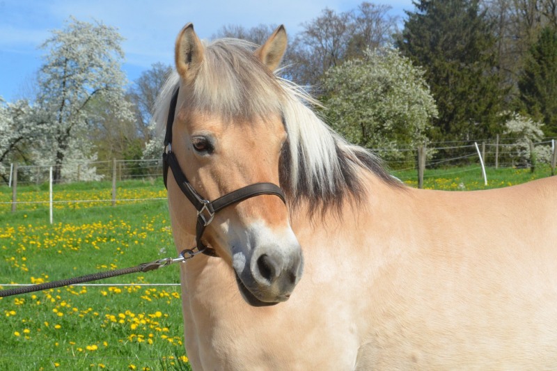 Großrahmige Fjordstute mit tollem Wesen. Sie geht in Bahn und Gelände, war schon als Showpferd auf vielen Auftritten und sehr grossen landwirtschaftlichen Messen dabei und hat das immer mit unglaublicher Gelassenheit gemeistert. Milla ist als zuverlässides Schulpferd bei uns im Einsatz. Sie ist wirklich ein Goldstück, leider aber mit gut händelbarem Handycap. Aufgrund von EMS braucht sie entsprechende Haltung( Gras im Sommer sehr reduziert), kann dann problemlos als zuverlässiges Freizeitpferd mit viel Spaß am Geländereiten ihren Reitermensch erfreuen.