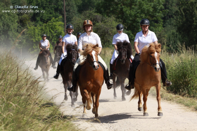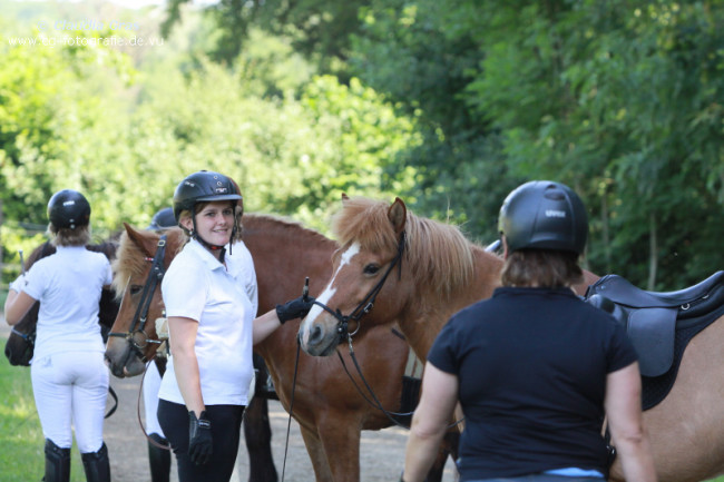 Am heißesten Pfingstwochenende seit den Wetteraufzeichnungen haben wir früh morgens mit den Prüfungen begonnen. Über den Mittag waren doch 38°C angesagt, da wollten wir mit unseren braven Pferden die Reitprüfungen abgeschlossen haben. Am Nachmittag dann noch der Härtetest für unsere Prüflinge mit der Theorie, aber alle haben fleißig gelernt und so konnten von den Prüferinnen Veronika Vollmer und Petra Hiller zum Teil sehr gute Noten vergeben werden. Insgesamt haben die Prüfer 2 Gangreitabzeichen bronze, 2 Reitabzeichen bronze, 3 Reitabzeichen silber, 2 Freizeitreitabzeichen bronze und einen Rittbegleiter abgenommen.