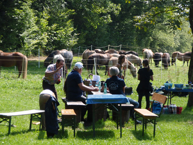 Nachdem die Pferde versorgt waren, ließen wir alle diesen herrlichen Tag mit einem gemütlichen Nachmittagskaffee mit gutem Kuchen ausklingen und haben alle beschlossen, daß wir sowas doch bald wiederholen müssen.