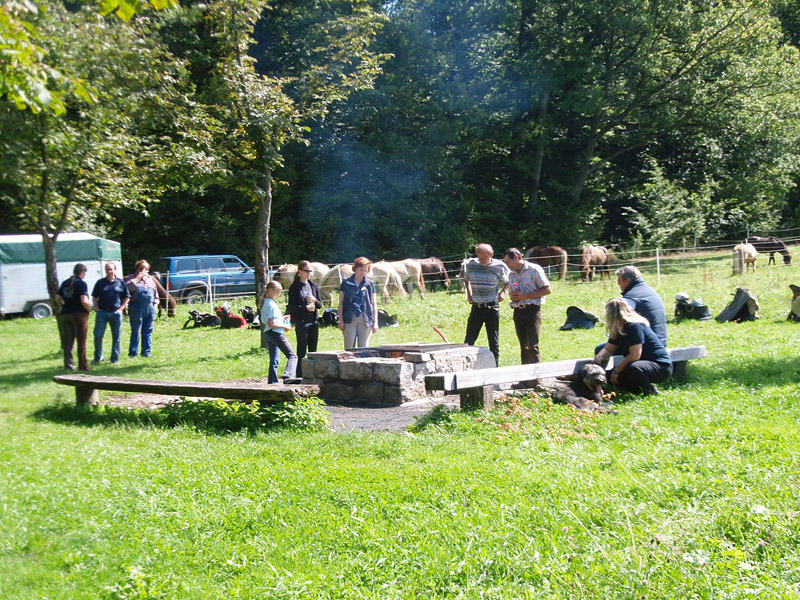 Auf dem Grillplatz angekommen haben wir unsere Paddocks für die Pferde aufgebaut und konnten dann den Grill anfeuern. Ruck-Zuck waren unsere Würstchen fertig, die zu den mitgebrachten Salaten hervorragend schmeckten.
