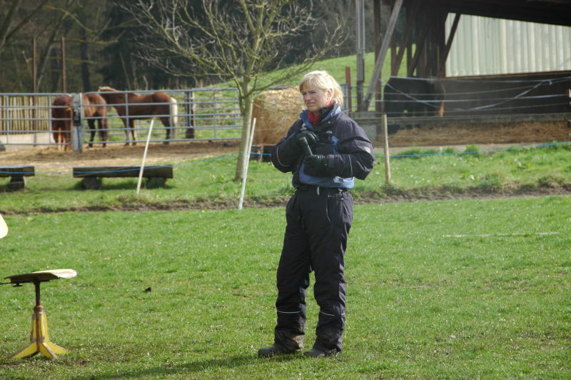 Am Samstag und Sonntag ging es dann zwischen Wolkenbruch und Sonnenschein zum arbeiten. Mit ihrer fröhlichen Art und ihrem konsequenten Dranbleiben an den Problemen brachte Hulda alle Teilnehmer mit viel Spaß und guter Laune wieder einen Schritt in der Reiterfahrung weiter.