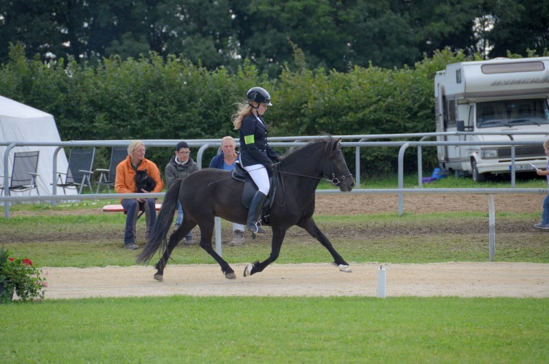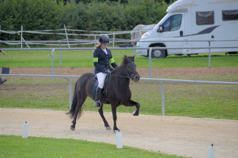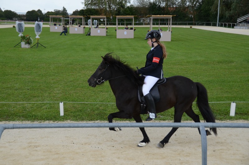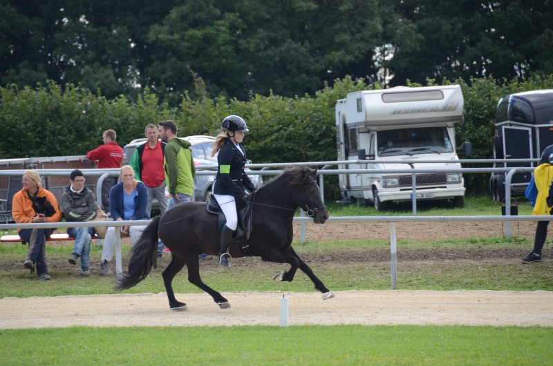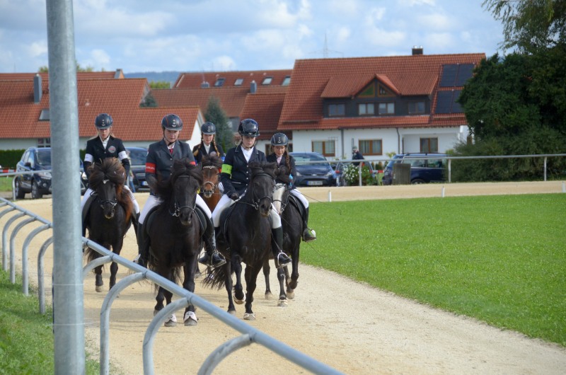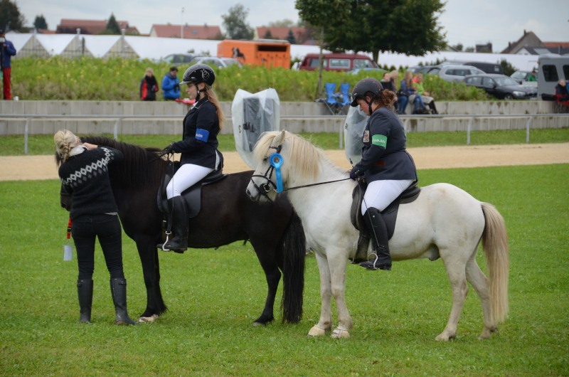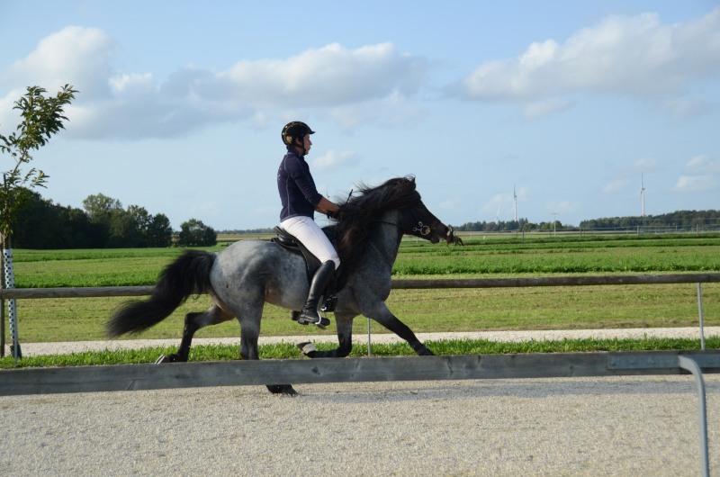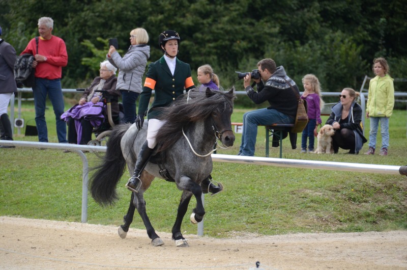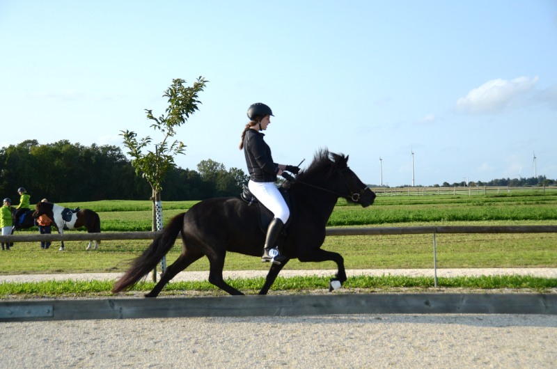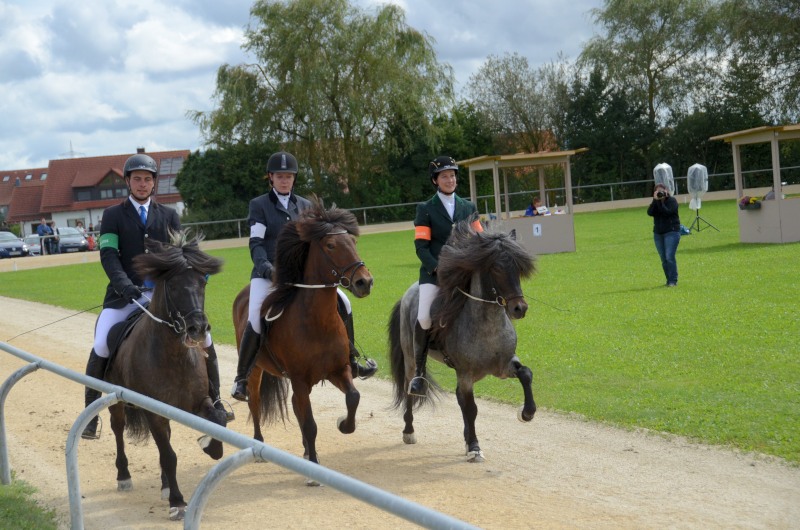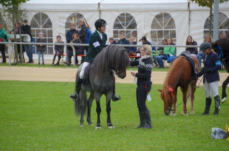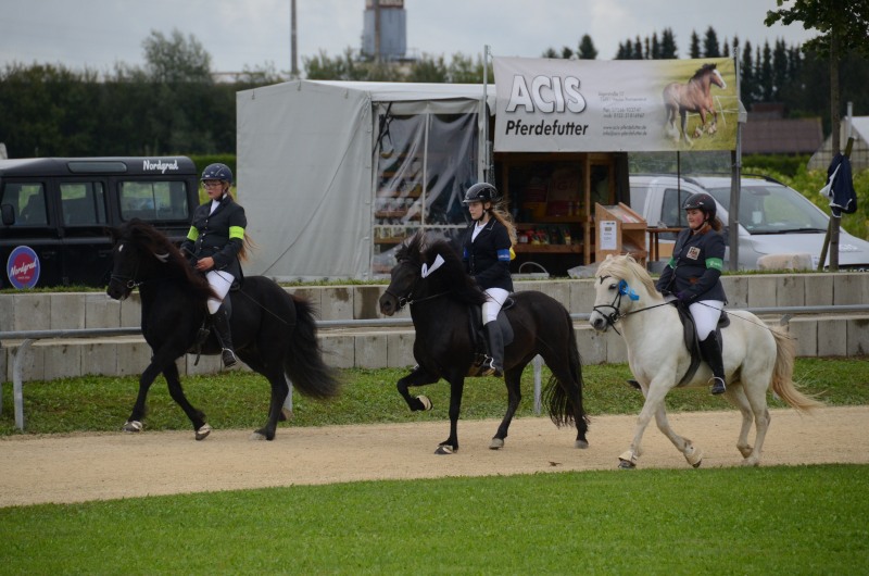 Am letzten Ferienwochenende haben wir mit Erfolg das Offene Sportturnier in Neuler besucht. Am Donnerstag liefen Lexia mit ihrer Besitzerin Valerie Glück in der gut besetzten Passprüfung bei den Junioren gleich auf den 5. Platz, Mimi konnte mit Sprengi-Hvellur bei den Erwachsenen auf den 4. Rang kommen. In den verschiedenen Vorentscheidungen qualifizierte sich Helen Single mit Ladina in der Töltprüfung T3 und im Viergang V5 ins Finale, Mimi Wenzel erreichte mit Sprengi- Hvellur direkt das A-Finale im Fünfgang und das B-Finale in der T4. Ein Highlight an dem leider verregneten Samstagabend war der Mitternachts-Tölt. Helen erreichte mit Pandra den 3. Platz und auch beim Kostümpreis war sie mit Rang 4 in der engeren Auswahl. Sonntags liefen die verschiedenen spannenden Finals. Mimi erritt sich verdient den 3. Platz im Fünfgang mit Sprengi-Hvellur, über das B-Finale hat sie sich auch noch ins A-Finale der T4 qualifiziert und konnte dort auf den 5. Rang vorrücken. Helen kam mit Ladina in der Töltprüfung T3 auf den 3. Platz und als Abschluß konnte sie sich den 2. Platz im Viergang sichern. Herzlichen Glückwunsch, das war doch ein schöner Saisonabschluß auf dem wie immer gut organisierten Turnier in Neuler. Jeder Start eine Platzierung!