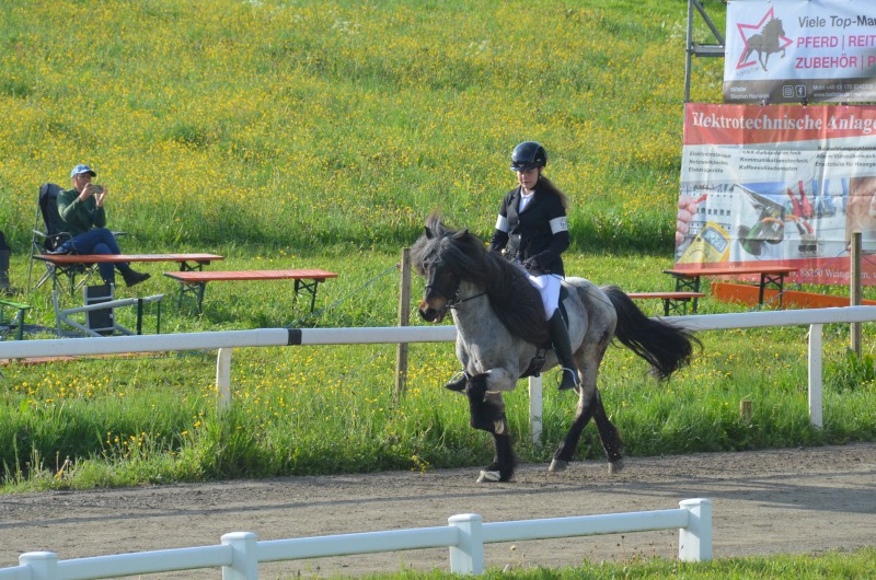 Anfang Mai war eine kleine feine Truppe in Möllenbronn mit den Pferden bei den Baden-Württembergischen Meisterschaften dabei. Von Dressur über Gangprüfungen und Spaßprüfungen bis zum Passrennen waren wir überall dabei. Besonders gefreut haben wir uns an unserer 19jährigen Pandra, die nach 3,5 Jahren Turnier- und Fohlenpause mit sichtlich Spaß von Helen Single in verschiedenen Passdisziplinen gestartet wurde. Sie erreichte gleich im Speedpass eine 9er Zeit und im 150m- Rennen war sie doch das schnellste baden-württembergische Pferd auf dem 4. Platz.