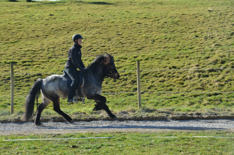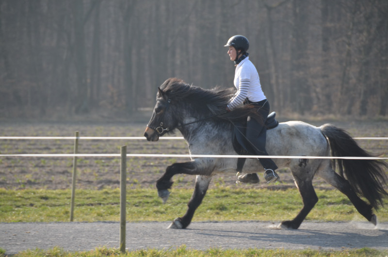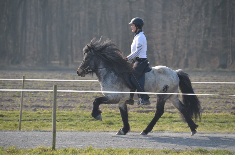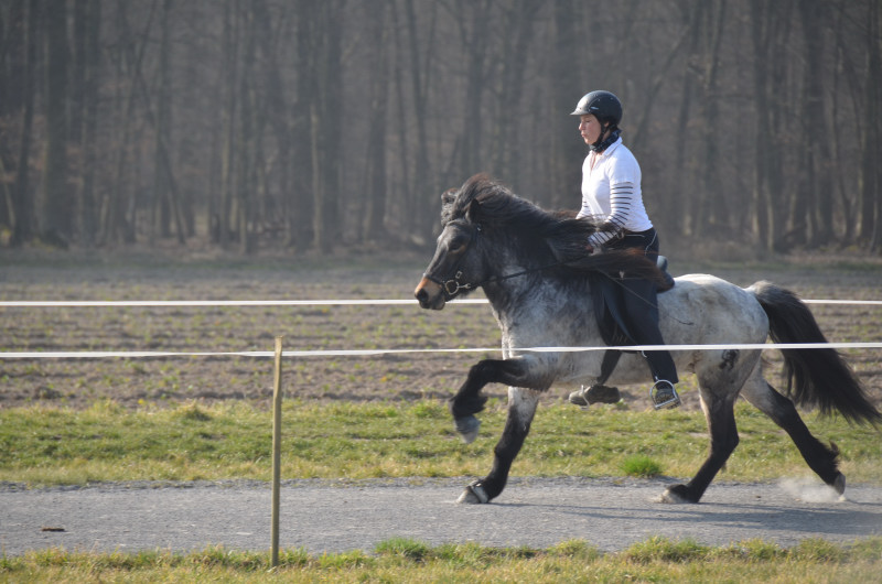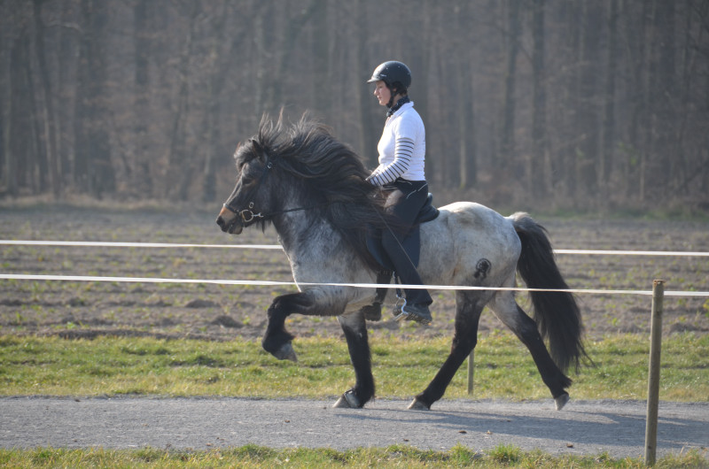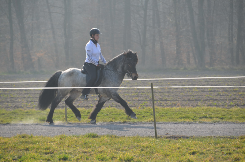 Seit Januar ist unser junger Farbwechslerhengst Spengi-Hvellur unterm Sattel und zeigt sich von Anfang an sehr leichtrittig und kooperativ. Er begeistert uns mit seinem fließenden Tölt, seiner Dynamik in den Gängen und durch sein ausgeglichenes Trab-Tölt-Verhältnis.