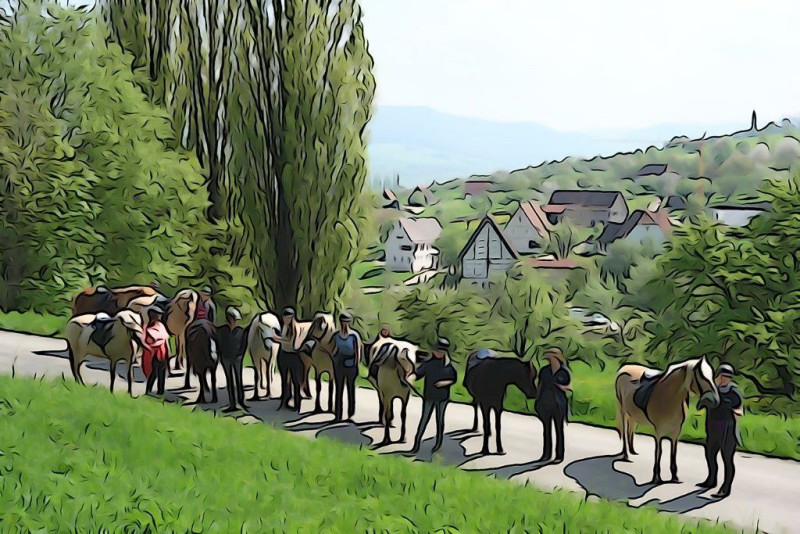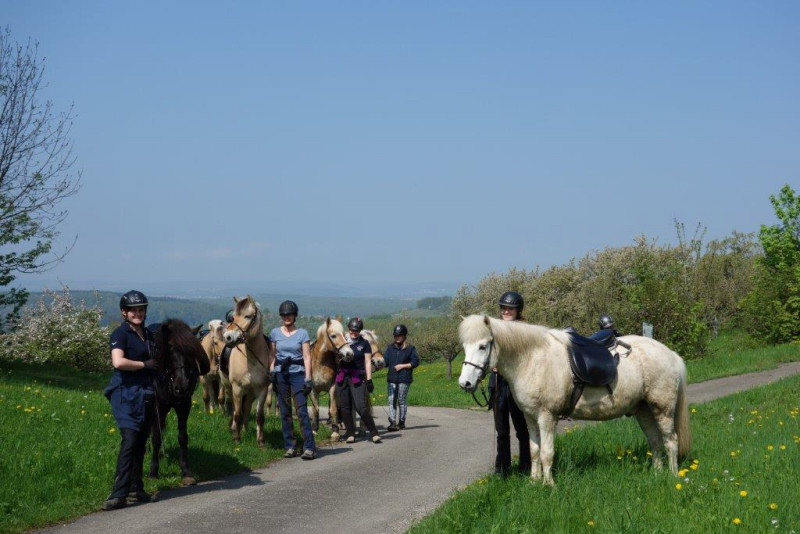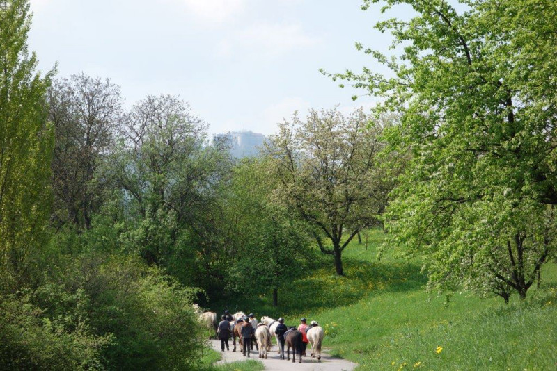 Am Sonntag, den 5. Mai, starteten neun Reiter mit ihren Pferden zum ersten Tagesritt dieser Saison. Bei bestem Wetter konnten wir die herrliche blühende Albvorlandschaft genießen.