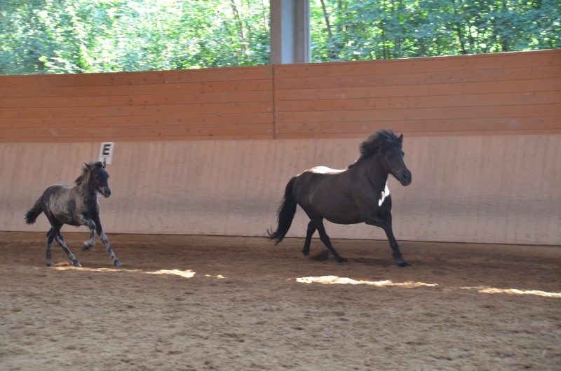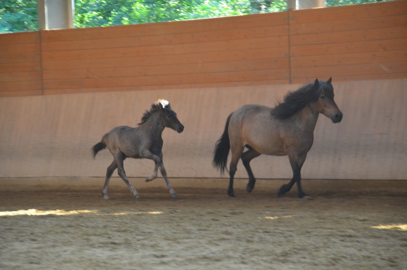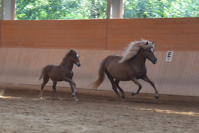 Wir waren sehr zufrieden mit allen unseren Island- und dem Fjord-Fohlen und konnten uns am Ende der vom Pferdezuchtverband Baden-Württemberg durchgeführten Fohlenschau bei uns über drei Goldfohlen freuen. Bei den Hengstfohlen sicherte sich der große Sólon vom Burrishof V: Kopernikus, M: Stjörnunótt vom Burrishof, mit einer Endnote von 8,08 den Sieg. Bei den Stutfohlen konnten wir uns über die Kopernikus-Töchter Artemis vom Burrishof, M: Audna mit einer Wertnote von 8,0 und das Siegerstutfohlen Pandora vom Burrishof, M: Puma mit einer Bewertung von 8,14 sehr freuen.