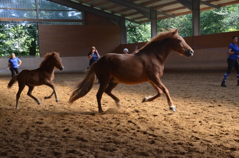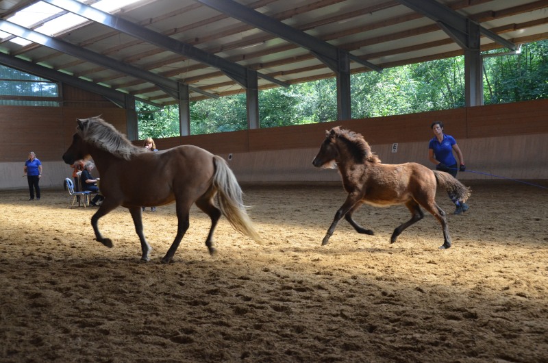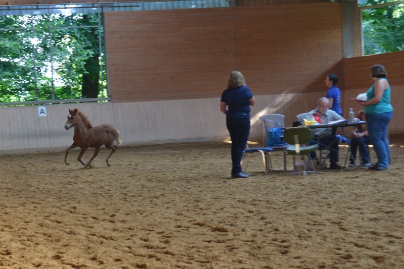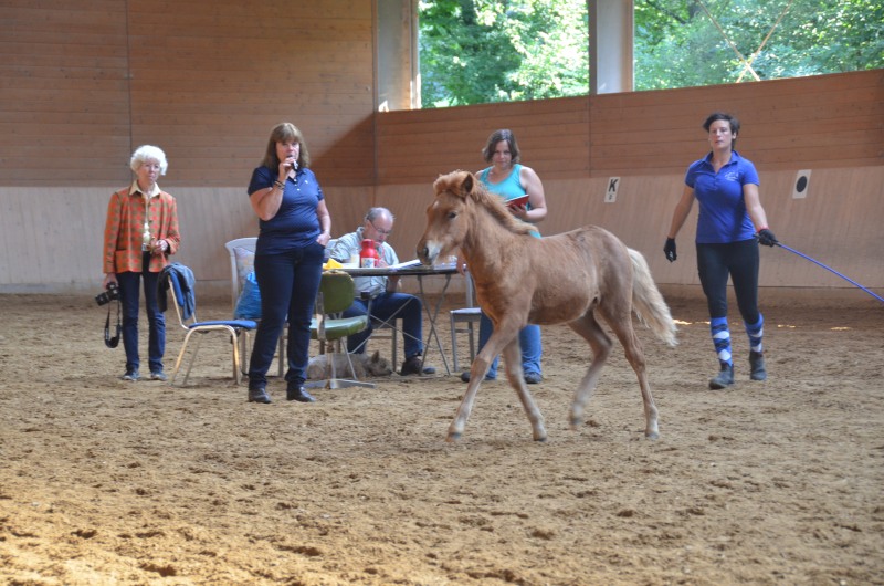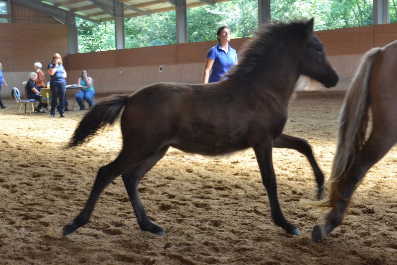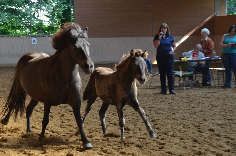 Der Montagvormittag war für unsere Fohlen sehr spannend. Marlise kommentierte die Fohlen und auch die zur Basisprüfung gezeigten jungen Stuten sehr genau und zuschauerfreundlich. Ihre Bewertungen konnten sehr gut nachvollzogen werden, sie ließ den Pferden immer genügend Zeit, um sich in die Situation einzufinden und sich zu präsentieren.