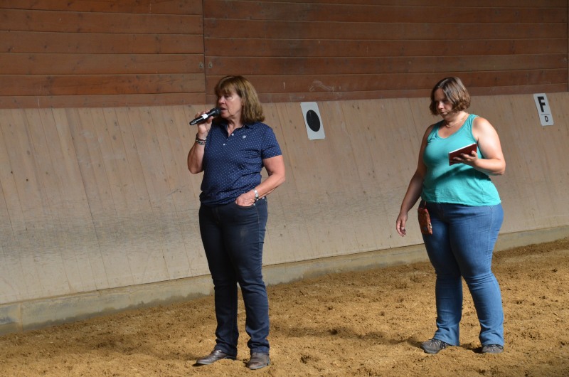 Einen höchst informativen Sonntagabend hatten wir vor der Fohlenschau mit Marlise Grimm. Die internationale Zuchtrichterin erklärte allen Zuchtinteressierten sehr gut, warum z.B. das Vorwärtstemperament und eine gute Oberlinie bei unseren Pferden so wichtig sind. Gemeinsam mit den Teilnehmern wurde anhand von drei verschiedenen Pferden deren Gebäude, die Gänge und die daraus zu erwartenden Reiteigenschaften erarbeitet.