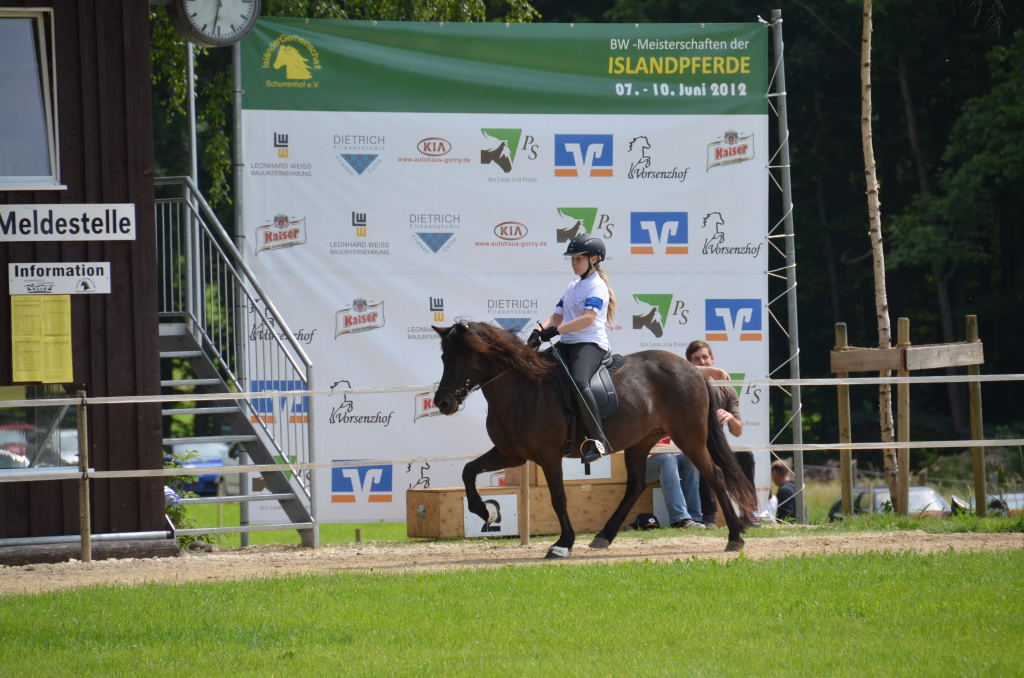 Auf den Baden-Württembergischen Meisterschaften auf dem Schurrenhof konnte Helen Single mit Rökkvadis vom Burrishof in der Kinderklasse L Schleifen sammeln. In der Geschicklichkeit errang sie den 3. Platz, in der Töltprüfung den 4. Platz und im Viergang den 5. Platz. Mimi Wenzel erritt in der Sportklasse mit Pandra vom Burrishof in der Töltprüfung T7 einen 4. Platz und in der Fünfgangprüfung F2 einen tollen 2. Platz .