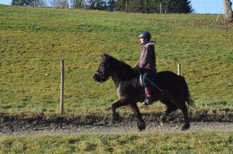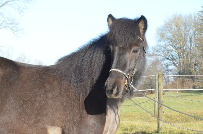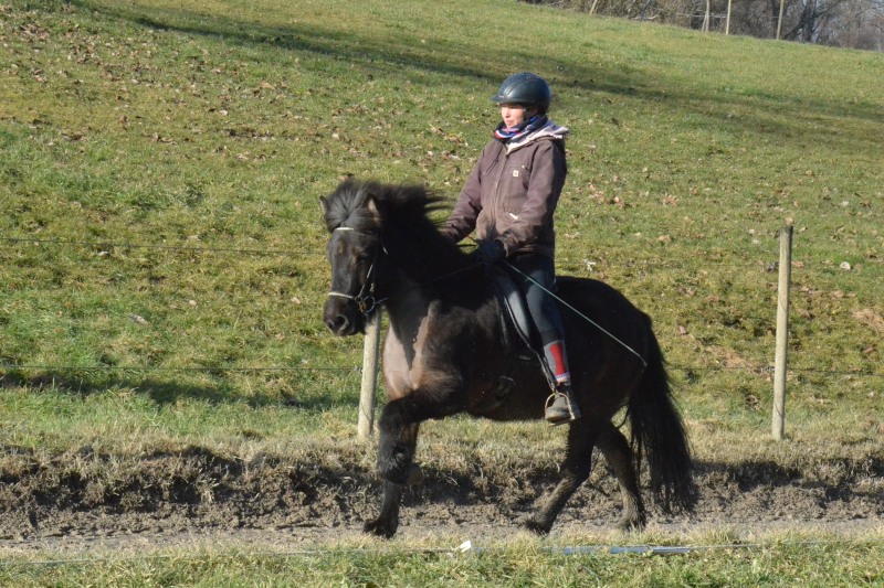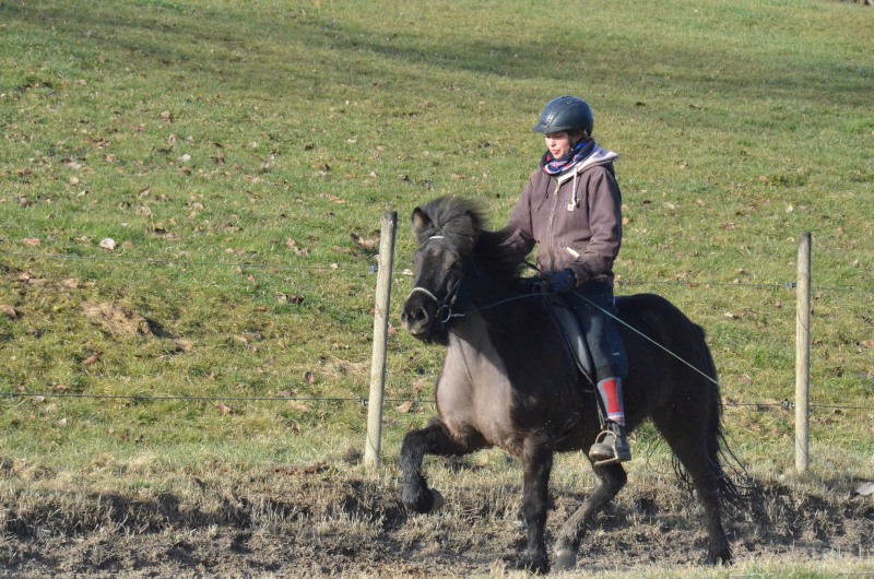Kräftige, hübsche Rappstute mit 4 gleichmässigen schicken Gängen und viel Naturtölt. Lómadis ist eine ausgeglichene, leichtrittige Stute mit angenehmem Temperament. Durch ihr neugieriges und unerschrockenes Wesen ist sie für allerlei Späße zu haben. Sie ist immer sehr kooperativ und ein sehr angenehmes Reitpferd.