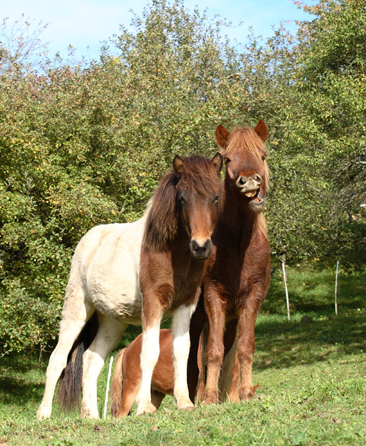 Die Jungpferde wachsen nach Geschlechtern getrennt artgerecht im Herdenverband auf. Sommers stehen sie Tag und Nacht auf etwas abgelegeneren Weiden rund um den Hof, den Winter verbringen sie in Offenstallpaddocks und bekommen je nach Wetterlage täglich einige Stunden Ausgang auf die Winterkoppel.