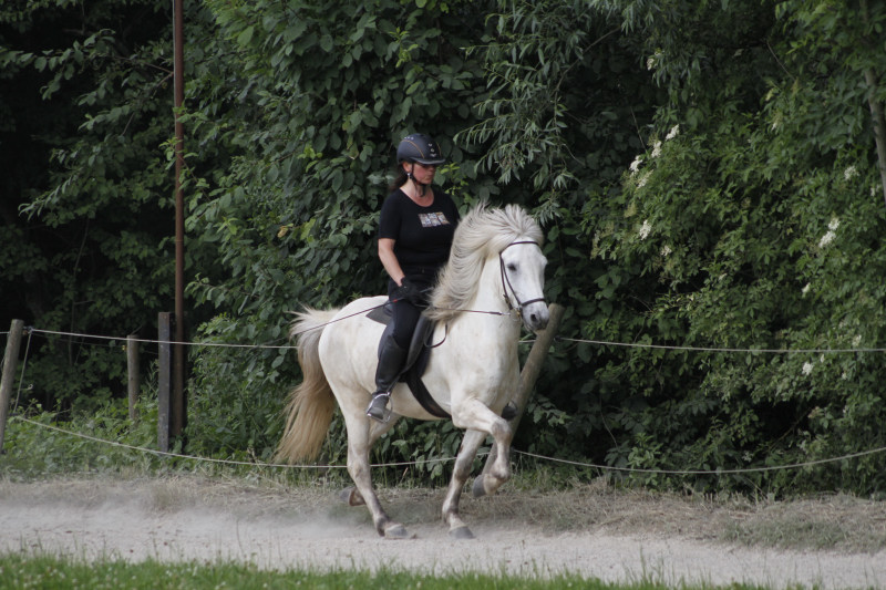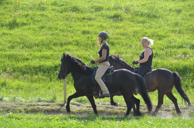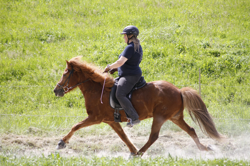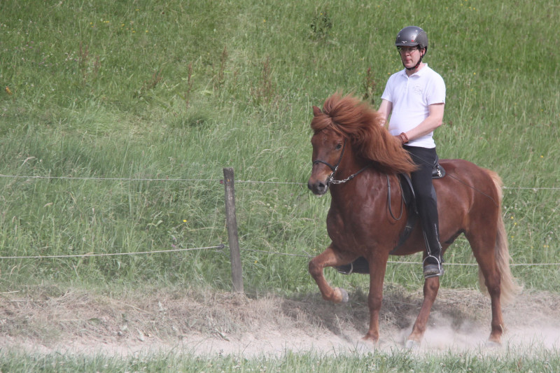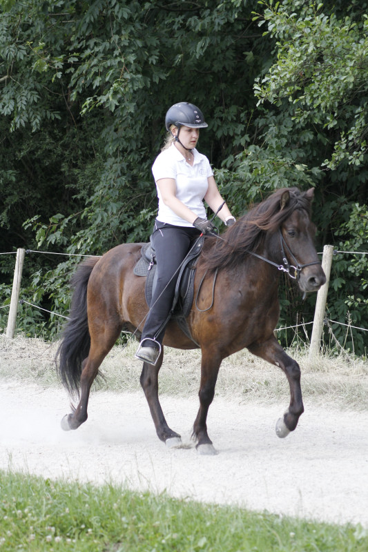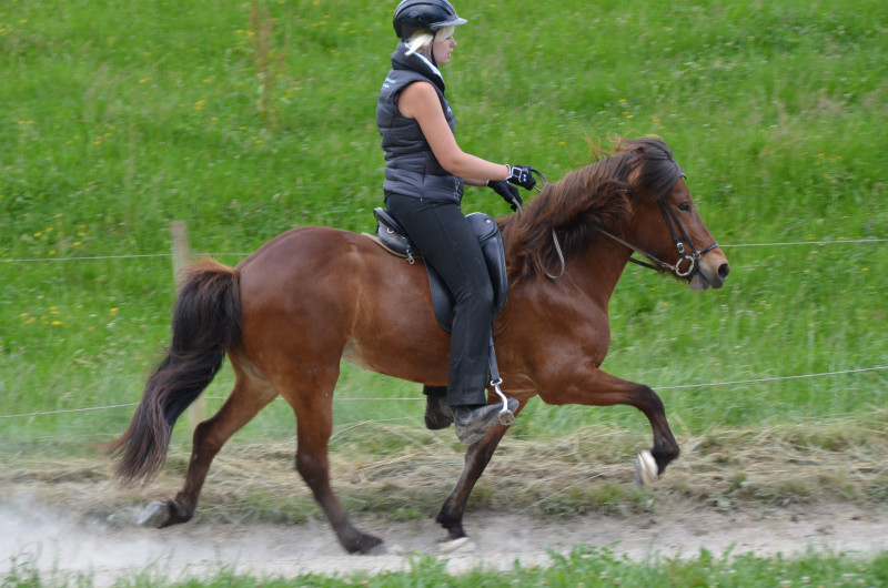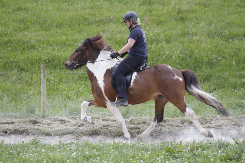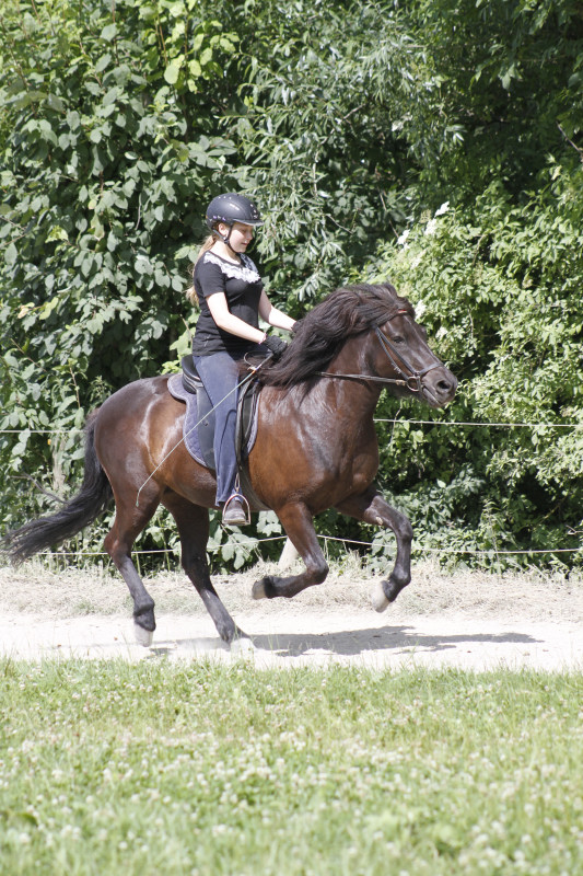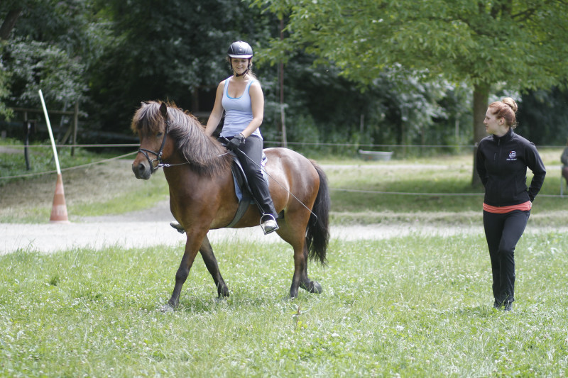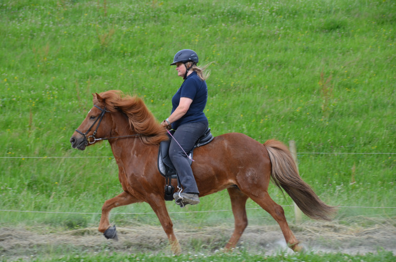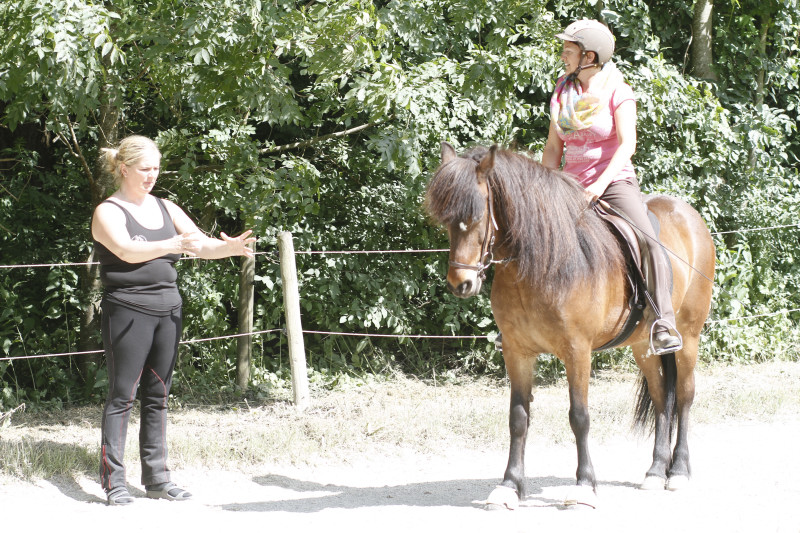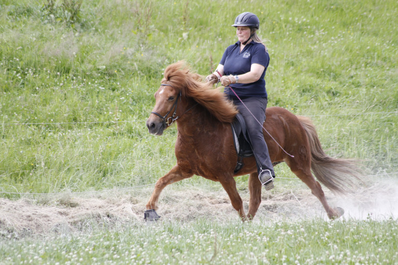 Vom 21.-23.6. war wieder Hulda Gústafsdóttir für einen Wochenendkurs aus Island angereist. Dieses Jahr hatte Hulda nicht nur ihre gute Laune im Gepäck, sondern auch ihre Tochter Edda dabei. Im Doppelpack gaben sie gleich zwei Kurse gleichzeitig auf unserer Ovalbahn, bei Edda im Einzelunterricht, bei Hulda in der Zweiergruppe. Bei hervorragendem Reitwetter konnten die Kursteilnehmer in 2,5 Tagen ihre Kenntnisse vertiefen und so manches Problem ließ sich auf die isländische Art einmal ganz anders angehen und lösen.