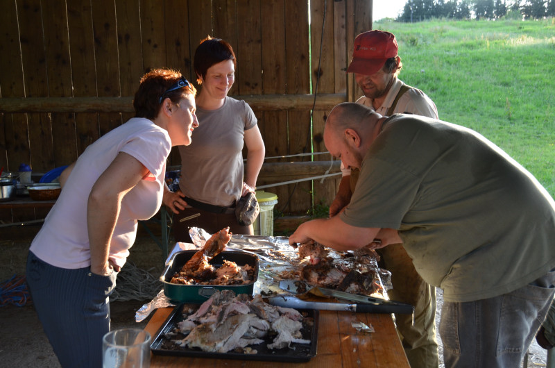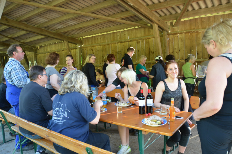 Da wir nicht nur Huldas Besuch zu feiern hatten, sondern auch die bestandene Pferdewirtschaftsmeisterprüfung von Annette, wurde am Samstag ausgiebig gegrillt. Das Feuer war bereits um 9.30 morgens geschürt und pünktlich zum Abendessen war das Fleisch zart und super lecker. Ein herzliches Dankeschön an das Grillteam und an die vielen Beilagen- und Nachtischspender!