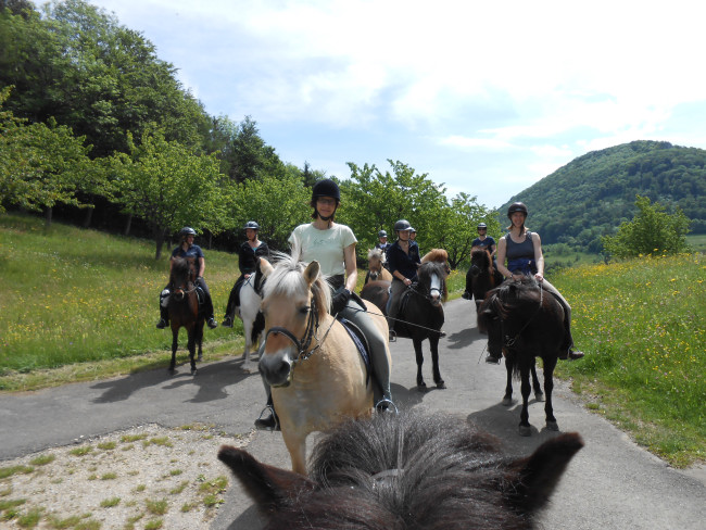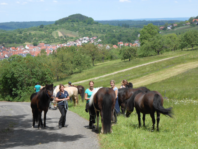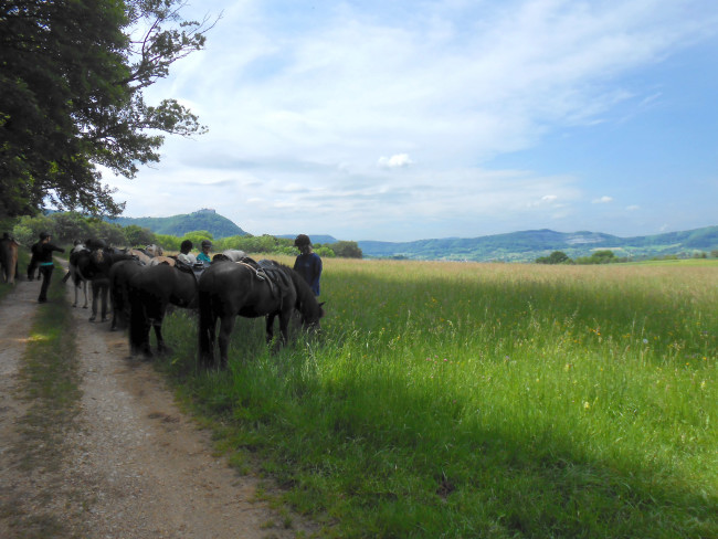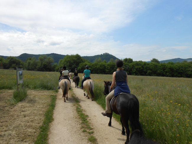 Bergauf ritten wir nun zum Philosophenweg und konnten hier die herrliche Strecke und Aussicht geniessen. Nach der Mittagsrast an der Skihütte Bleiche in Beuren gings über Neuffen zurück zum Hof. Was für ein schöner Ritt.