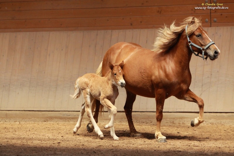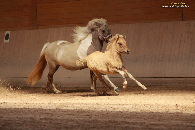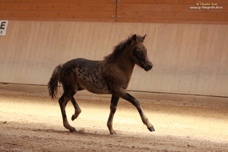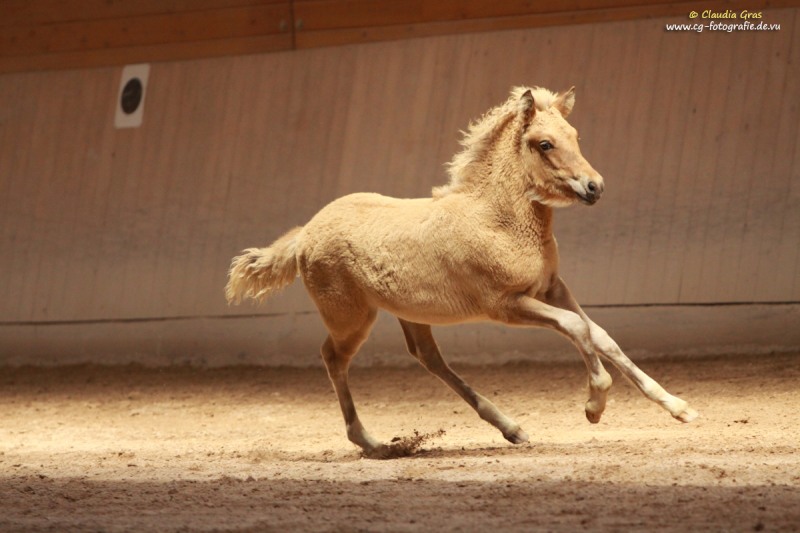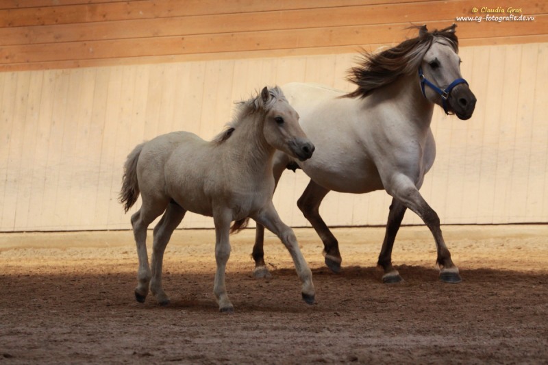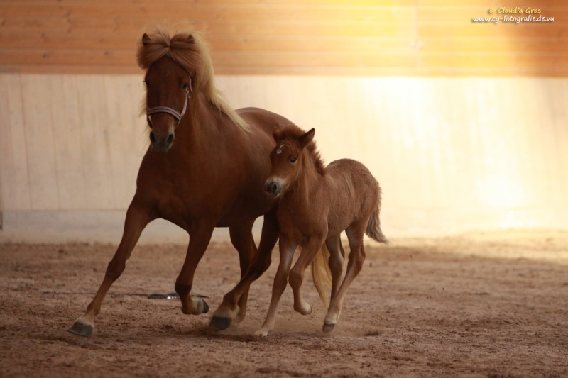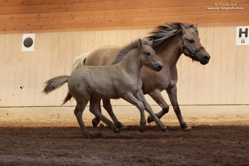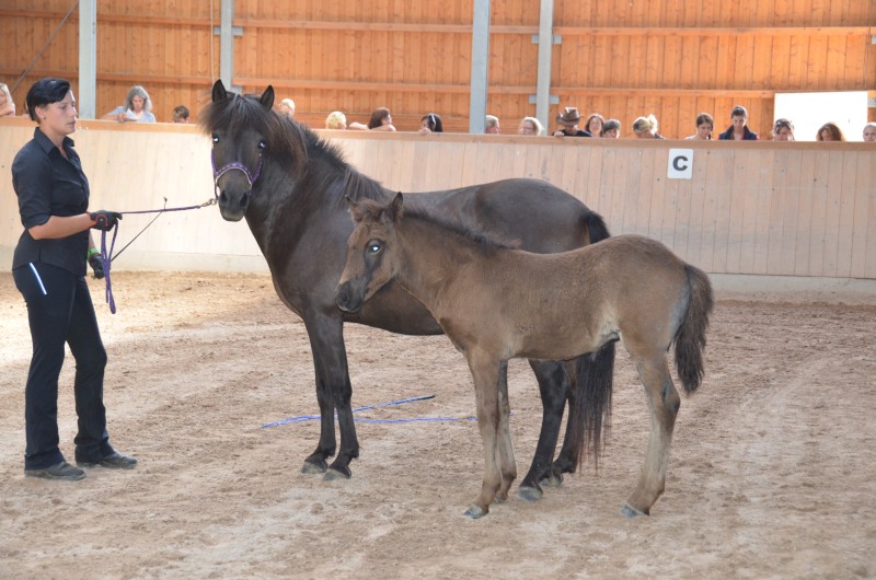 Im August war es wieder soweit: Fachleute vom Pferdezuchtverband Baden-Württemberg und die internationale Richterin Barbara Frische waren auf dem Burrishof um die diesjährigen Fohlen zu bewerten und einzutragen. Es ist zwar immer nur eine Momentaufnahme, aber manche Fohlen präsentieren sich doch sehr gerne. Röskur vom Burrishof, ein Sohn unserer Runa und von Sprengi-Hvellur, konnte mit seinem Exterieur, Interieur und seiner Gangveranlagung überzeugen und wurde Sieger der Fohlenschau mit einer Bewertung von 8,08 Punkten und einer Goldplakette. Unser jüngstes, die kleine Fuchsstute Athena vom Burrishof, war leider noch zu klein um eine Bewertung zu bekommen, wäre aber laut Barbara das beste Fohlen von allen gewesen. Die beiden Fjordlausbuben Julius und Niels erfreuten mit ihren lustigen Freudenhüpfern nicht nur das Publikum, Niels konnte zudem ebenfalls mit einer Goldplakette bedacht werden.