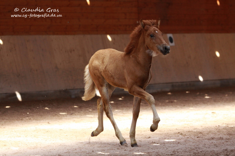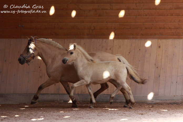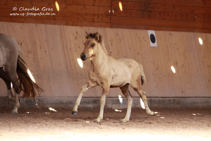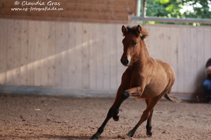 Am 15. August durften sich unsere Fohlen auf der Fohlenschau von ihrer besten Seite zeigen. Sie wurden von der internationalen Zuchtrichterin Barbara Frische sowie von Michaela Gstach als Vertreterin der Kleinpferdezüchter vom Pferdezuchtverband Baden-Württemberg genau begutachtet und bewertet.