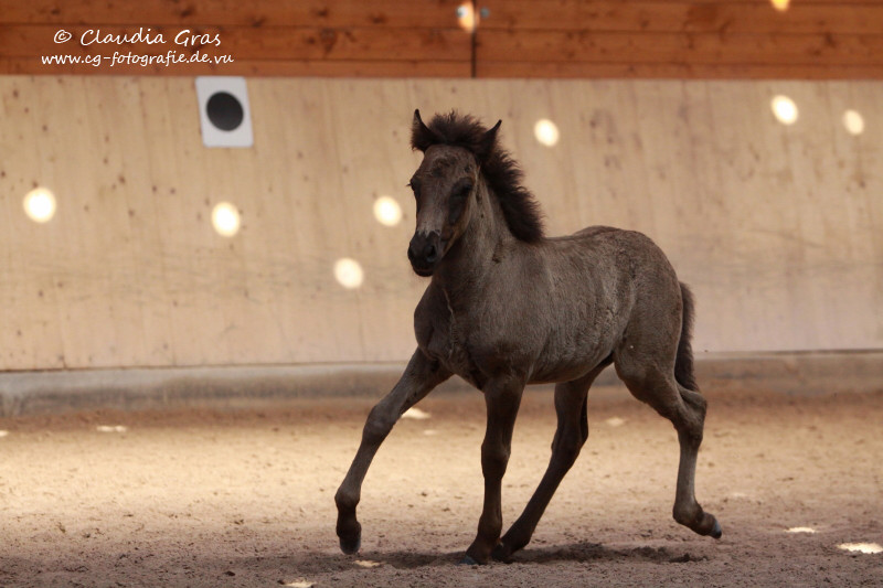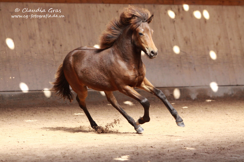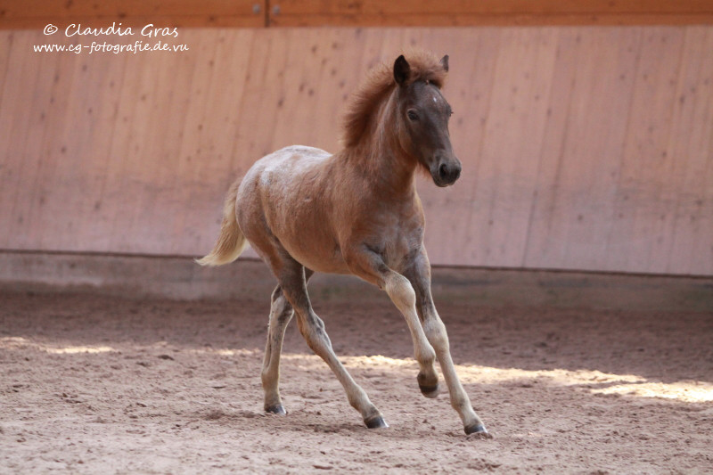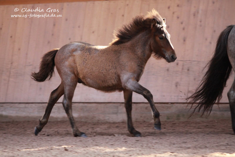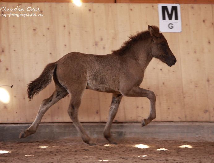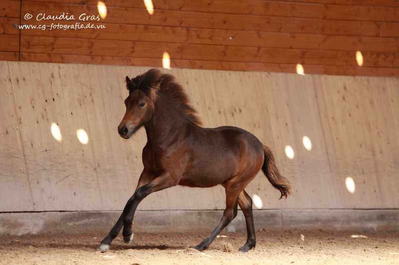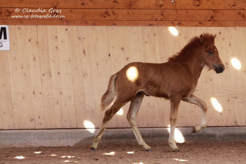 Unser Siegerfohlen bei den Hengsten mit der Endnote 8,06 ist Sólvindur vom Burrishof. Dieser stammt ab von Alvar frá Pulu und unserer Stjörnunótt vom Burrishof.