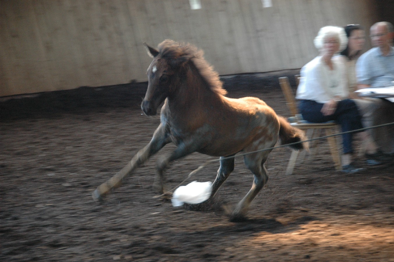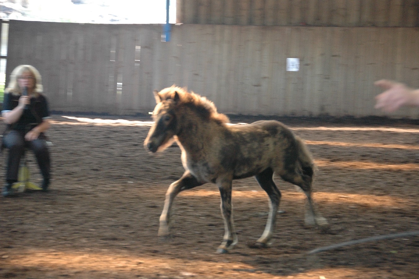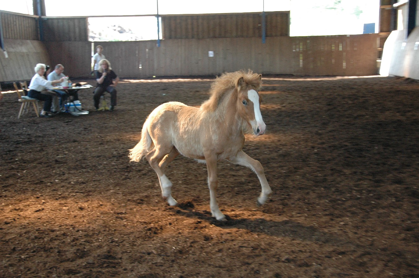 Die Yngri-Fohlen konnten auch in der Bewegung gut gefallen.  Unser Braunfarbwechsler-Fohlen Sprengi-Hvellur bekam für den Gang die 8,30, der Fuchsfalbe Ullin erhielt für Gang die 8,20 und der Kátinasohn die 8,0. Bestes Hengstfohlen war mit einer Gesamtwertung von 8,05 der Fuchsfalbe-Farbwechsler Yggdrasill von Yngri aus unserer Perla. Bestes Stutfohlen mit 8,10 in allem war die erst 4 Wochen alte Lyfting- Tochter Lexia, die  Throttur frá Hvalsnesi zum Vater hat.