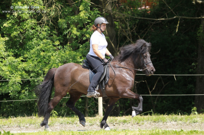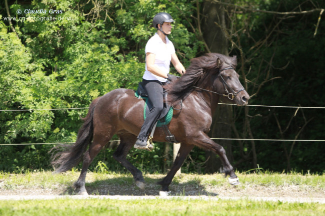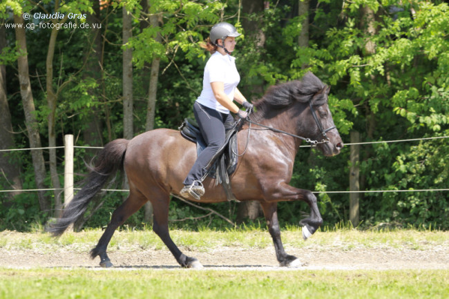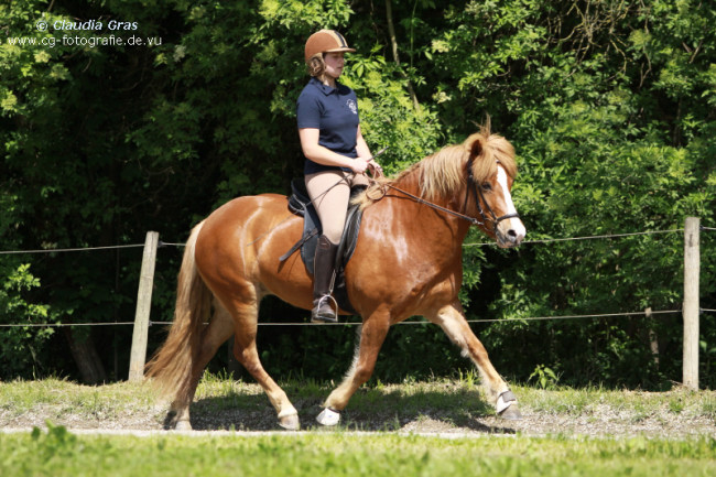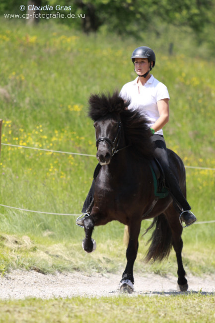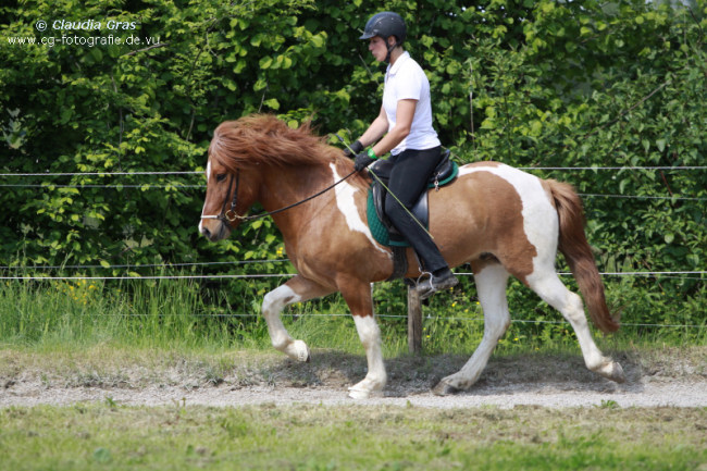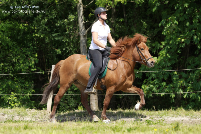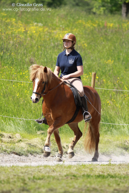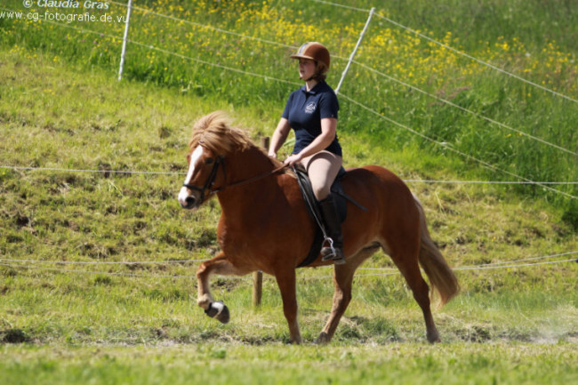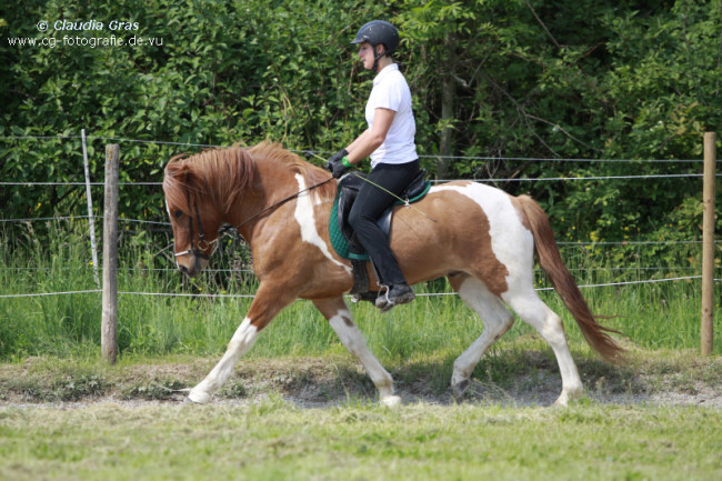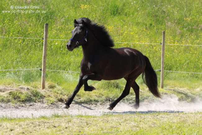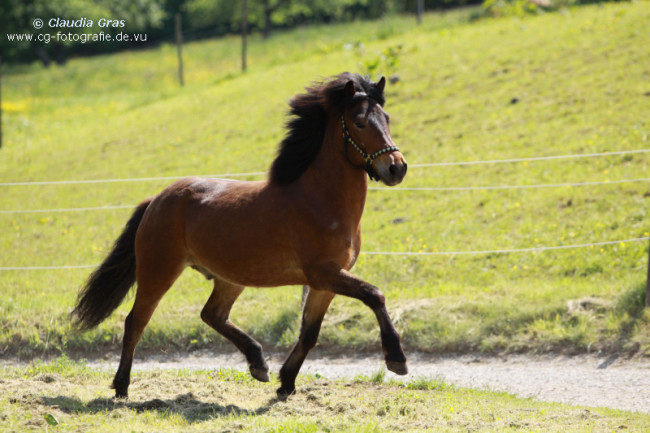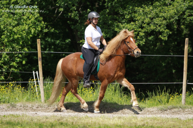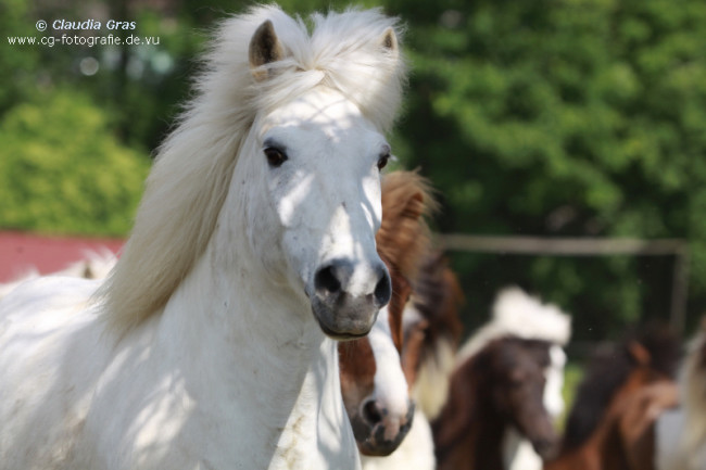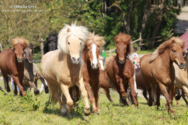 Unterm Sattel oder freilaufend durften sie ihre Qualitäten zeigen. Unsere Deckhengste Alvar und Sprengi-Hvellur wurden von Mimi ebenfalls unterm Sattel präsentiert. Bei Kuchen und Getränken verflog die Zeit schnell und als weiteres Highlight nach der Verkaufsschau konnten die Zuschauer und Pferdebesitzer den Weideauftrieb der großen Wallachherde mitverfolgen. Das ist doch jedes Jahr aufs Neue ein Erlebnis. Hier ein paar Impressionen.