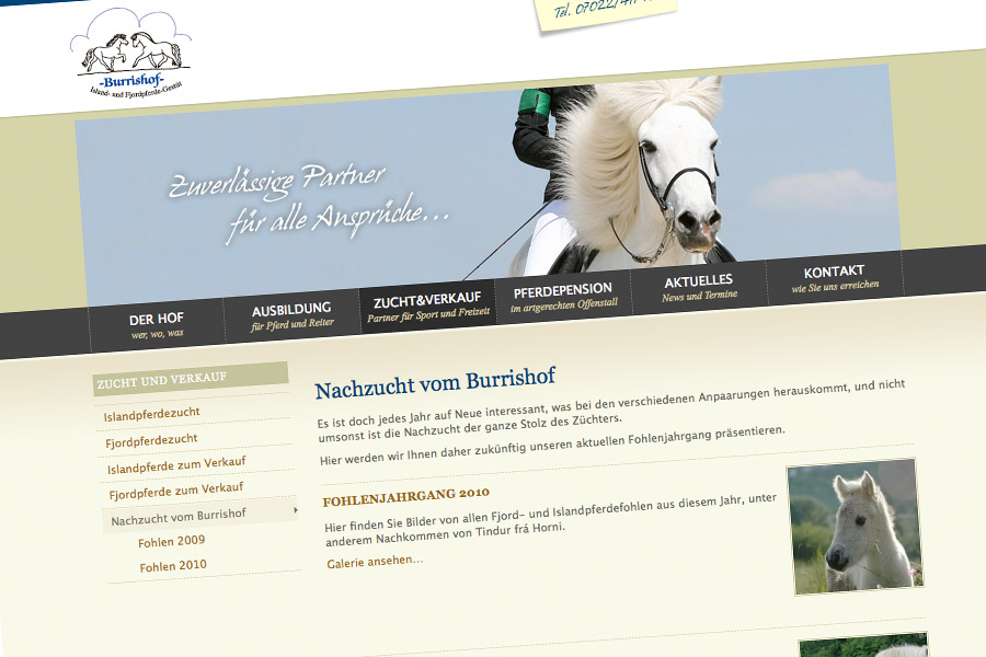 Wir haben unsere Website ein bißchen aufgepeppt. Neben vielen neuen Bildern in verschiedenen Seitensektionen finden Sie nun auch ständig aktuelle Fohlengalerien jedes Jahrgangs auf unserer Seite “Nachzucht vom Burrishof“.