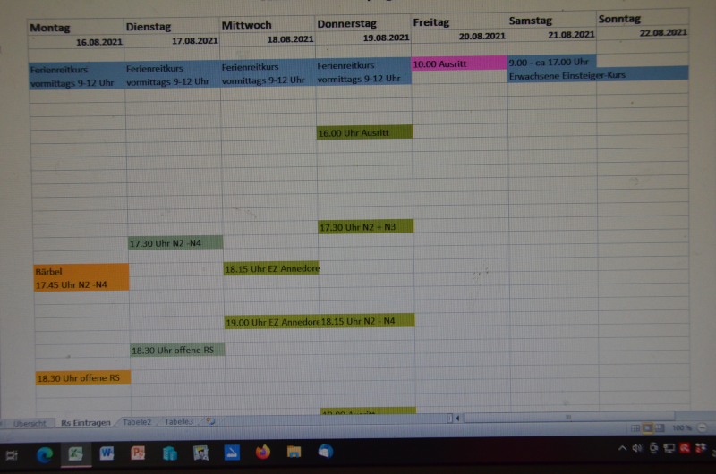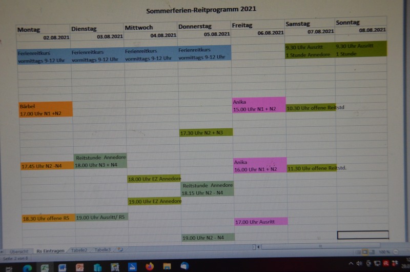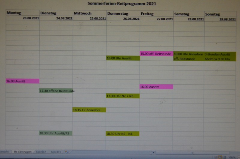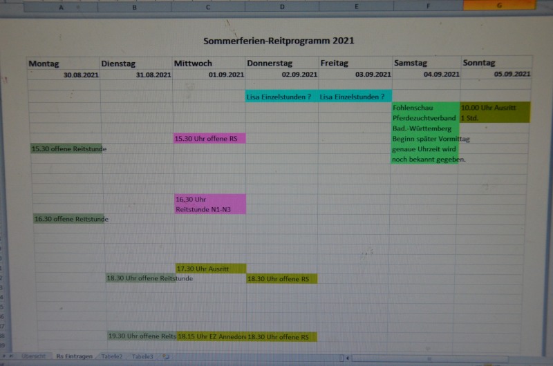 Damit die Reitpause nicht so lange dauert und für alle Daheimgebliebenen bieten wir wieder ein buntes Ferienreitstunden-Programm. Hier ist eine Übersicht, bei Interesse gerne anrufen. Wenn ihr keinen Termin für euch findet, bitte einfach melden, wir sind meistens flexibel.