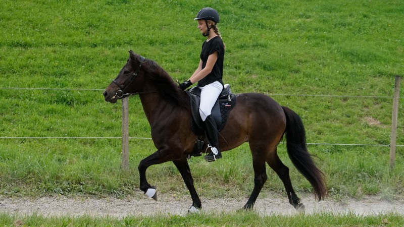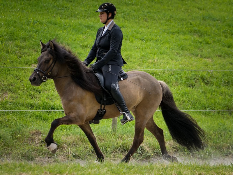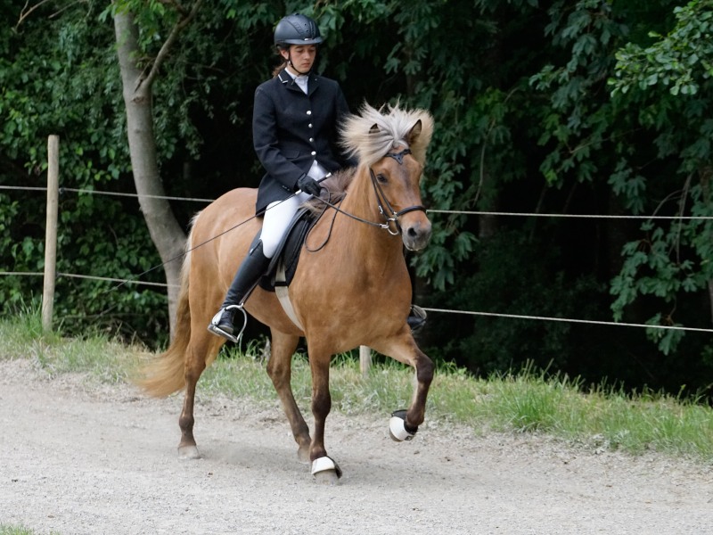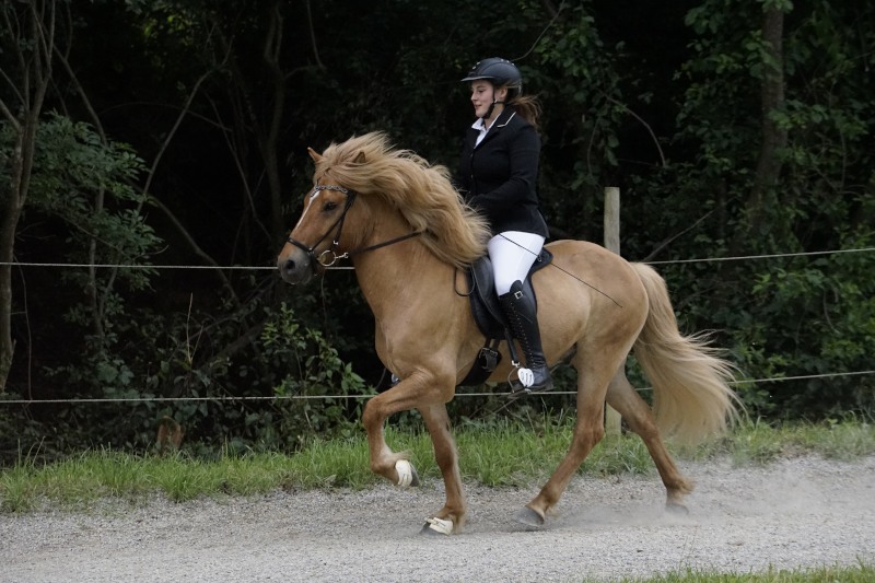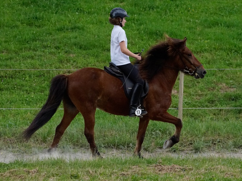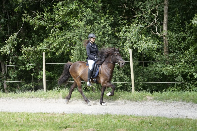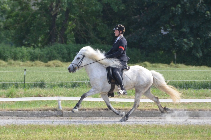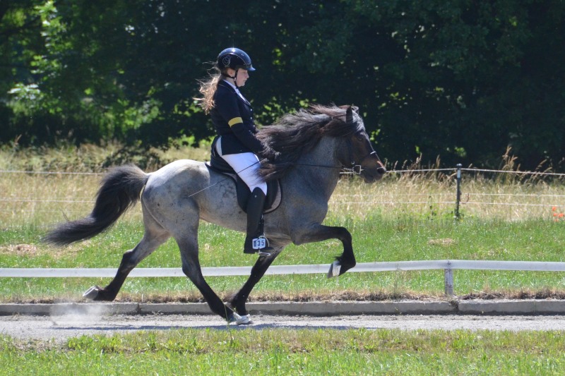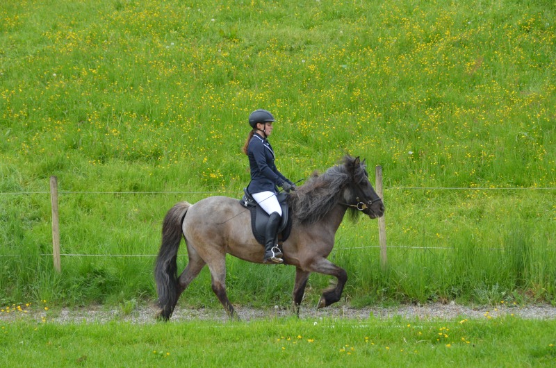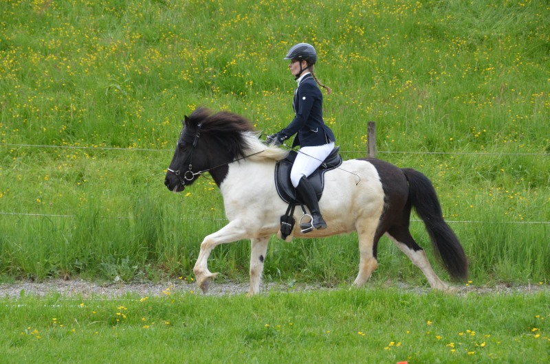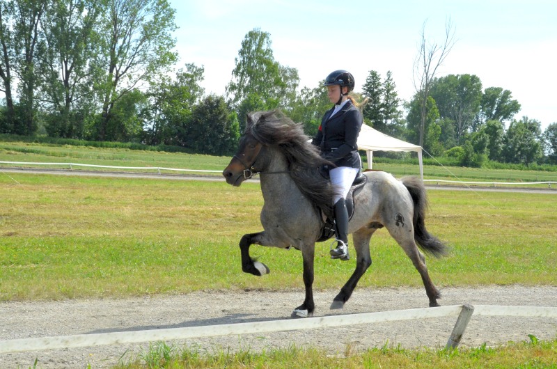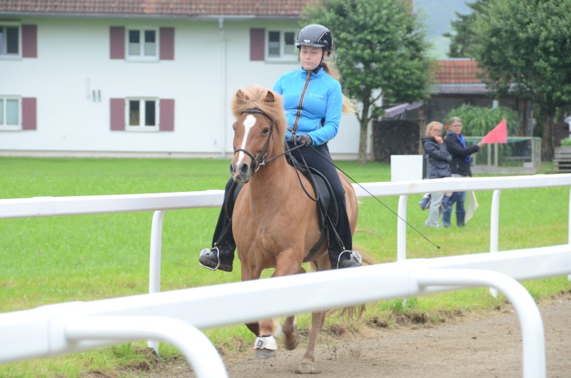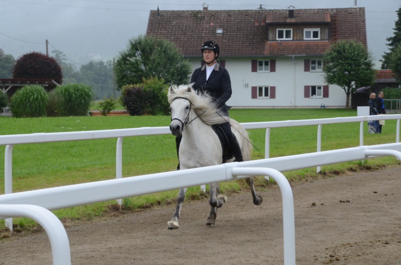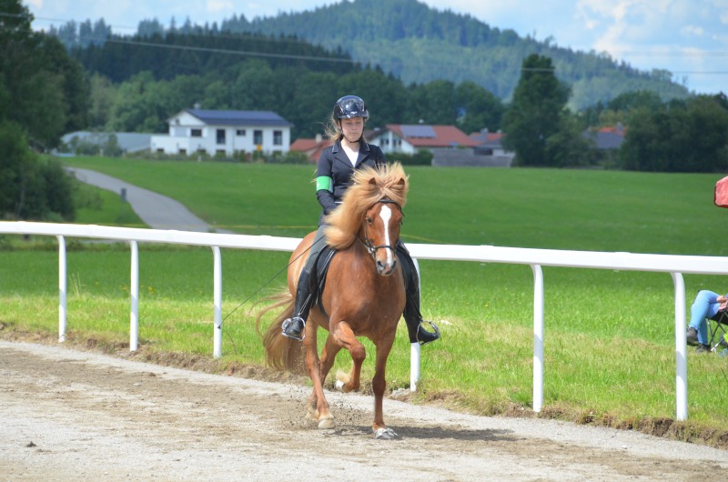 Mitte Juli gings dann auf zur BW-Meisterschaft ins Allgäu auf den Alpenhof. Unter z.T. widrigsten Wetterbedingungen liefen unsere Pferde tapfer ihre Prüfungen. Helen konnte eine Töltprüfung mit Paeja für sich entscheiden. Mit Sprengi-Hvellur erreichte sie den 2. Platz in der anspruchsvollen T3 und im Fünfgang konnte sie mit z.T. sehr hohen Noten die Qualifikation zur Deutschen Jugend-Islandpferdemeisterschaft erreiten.