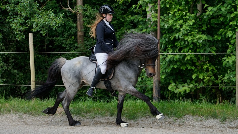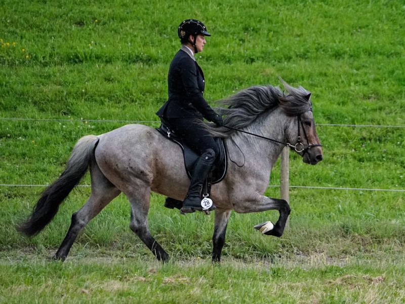 Wir sind sehr stolz auf unsere Farbwechslerstute Hrönn vom Burrishof. Nach ausgiebigem Training bei uns wurde sie Anfang Mai von Thorsten Reisinger auf der Zuchtprüfung in Neuler vorgestellt. Sie erhielt für ihr Gebäude die Note 8.18, für ihre Reiteigenschaften 4gängig die 8.33 und damit die Gesamtnote von 8,28. Eine herausragende Leistung von diesem Herzenspferd mit dem unglaublichen Charakter und Leistungswillen.