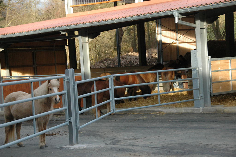 Die Ponies sehen richtig klein aus in dem großen Auslauf.