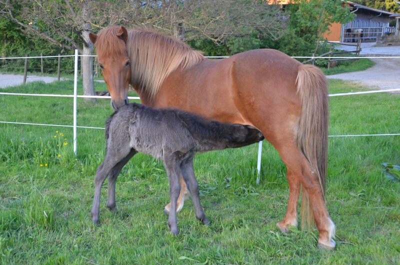 Helladis vom Burrishof, geb. 10.05.2025; V: Bassi frá Jöklu, M: Hrönn vom Burrishof, Rappfarbwechslerstute